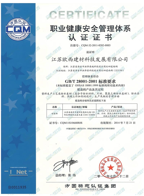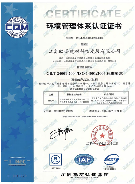 Oseaguard Tech was certified by China Building Waterproofing Industry Standardization Laboratory